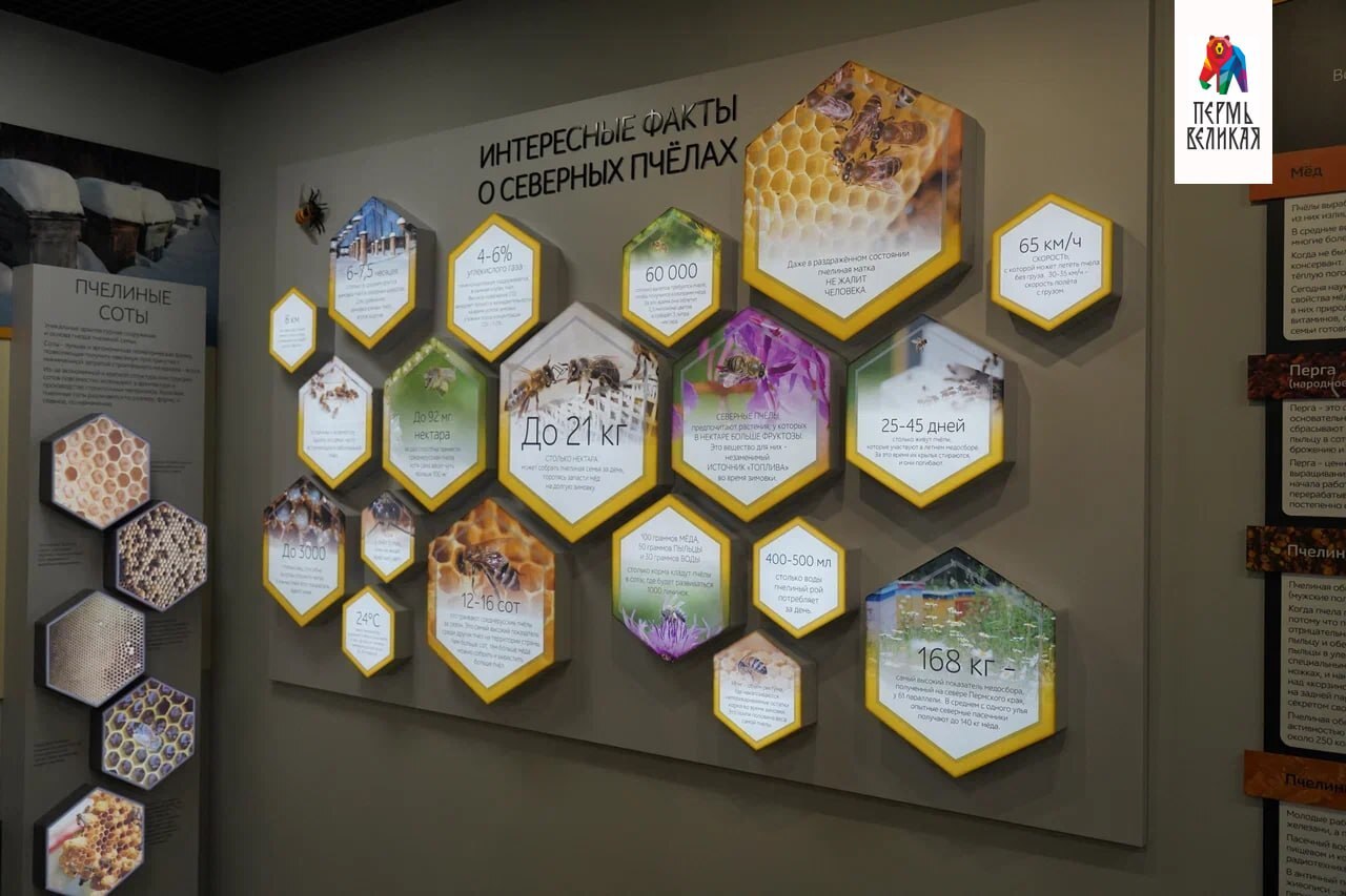 Здесь можно услышать необычные факты о пчёлах, прикоснуться к быту пчеловодов. А в зале интерактивной деятельности при помощи микроскопов можно изучить ботаническое происхождение мёда, принять участие в мастер-классах, увидеть полёт пчел через 3D-очки.